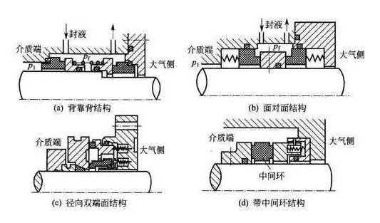 機(jī)械密封按工作條件和介質(zhì)性質(zhì)的不同,有耐高溫、耐低溫機(jī)械密封,耐高壓、耐腐蝕機(jī)械密封,耐顆粒介質(zhì)機(jī)械密封和適應(yīng)易汽化的輕質(zhì)烴介質(zhì)的機(jī)械密封等,應(yīng)根據(jù)不同的用處選取不同結(jié)構(gòu)型式和材料的機(jī)械密封。