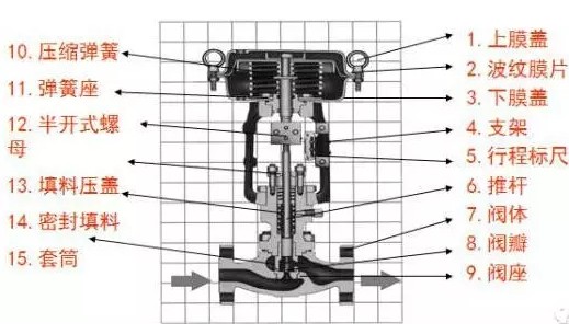 當(dāng)膜室內(nèi)的氣壓大于彈簧的彈力范圍及閥體內(nèi)部壓力和其它阻力時,就可以推動閥芯、閥桿、推桿等構(gòu)件自由運(yùn)動了。