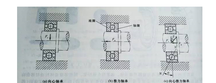 按運(yùn)動元件受力狀況的不同,軸承可分為向心軸承、推力軸承 和 向心推力軸承 三大類。