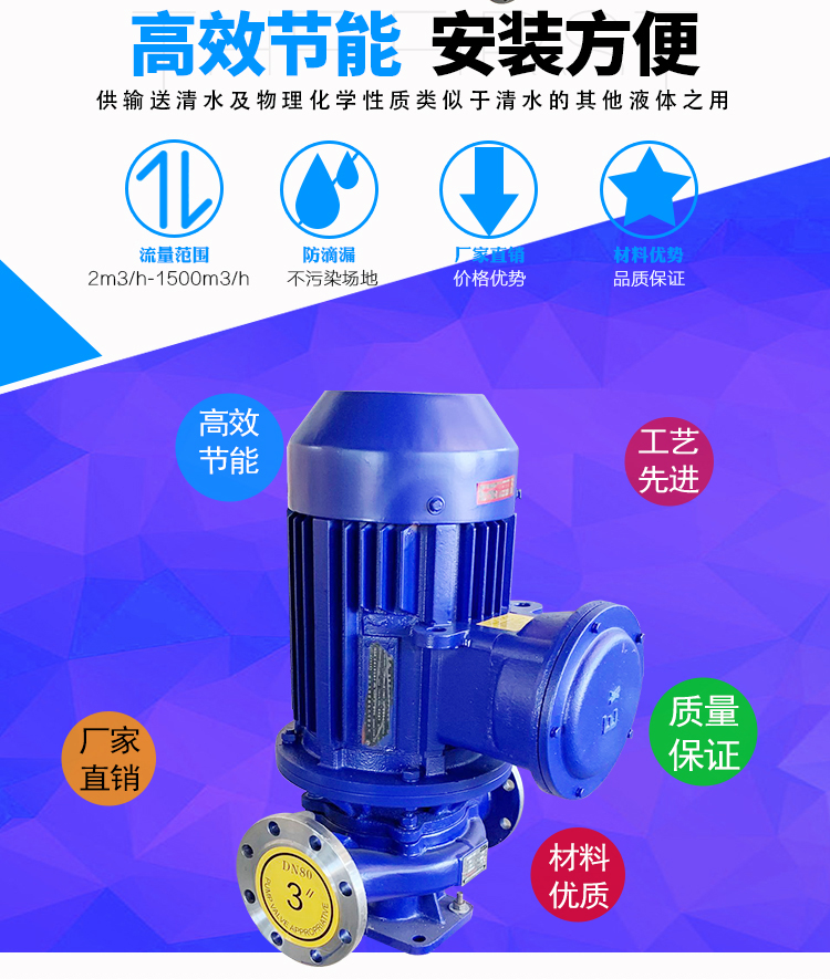 WJLG立式管道離心泵供輸送清水及物理化學(xué)性質(zhì)類似于清水的其它液體之用,適用于工業(yè)和城市給排水、高層建筑增壓送水、園林噴灌、消防增壓、遠(yuǎn)距離輸送、暖通制冷循環(huán)、冷暖水循環(huán)增壓及設(shè)備配套,正常使用溫度<100℃,100℃以上配制耐高溫材料。
