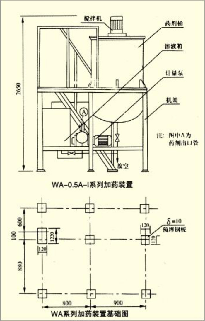 本公司生產(chǎn)的WA系列加藥設(shè)備是專供投加水質(zhì)穩(wěn)定劑、混凝劑、消毒劑等多種性能的水處理藥劑。