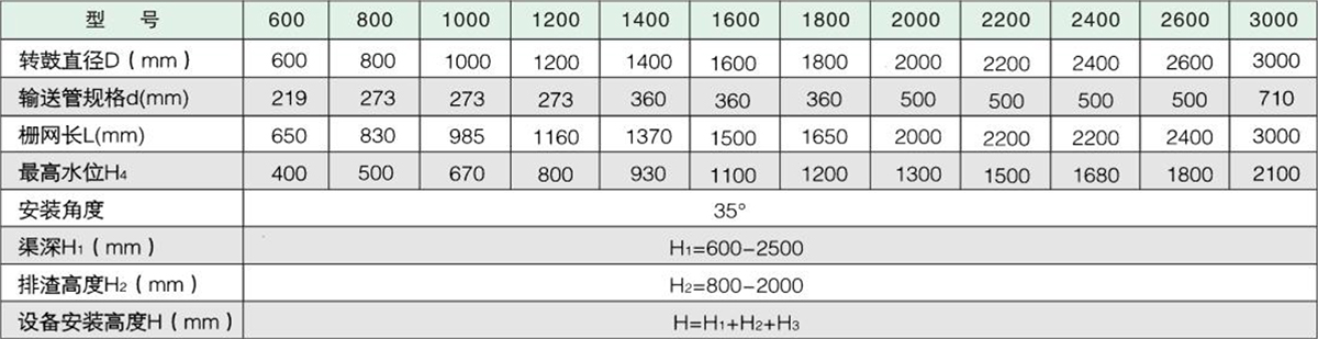 該設(shè)備與水平面成35度安裝在水渠中,污水從轉(zhuǎn)鼓的端頭流入鼓中,水通過轉(zhuǎn)鼓側(cè)面的柵縫流出,格柵將水中的懸浮物、漂浮物等留在轉(zhuǎn)鼓中,轉(zhuǎn)鼓以一定的速度旋轉(zhuǎn),鼓的上方有尼龍刷和沖洗水噴嘴,將柵渣清除并通過螺旋輸送運(yùn)轉(zhuǎn)擠干,脫水,運(yùn)至上端排料斗,經(jīng)輸送機(jī)運(yùn)走。
